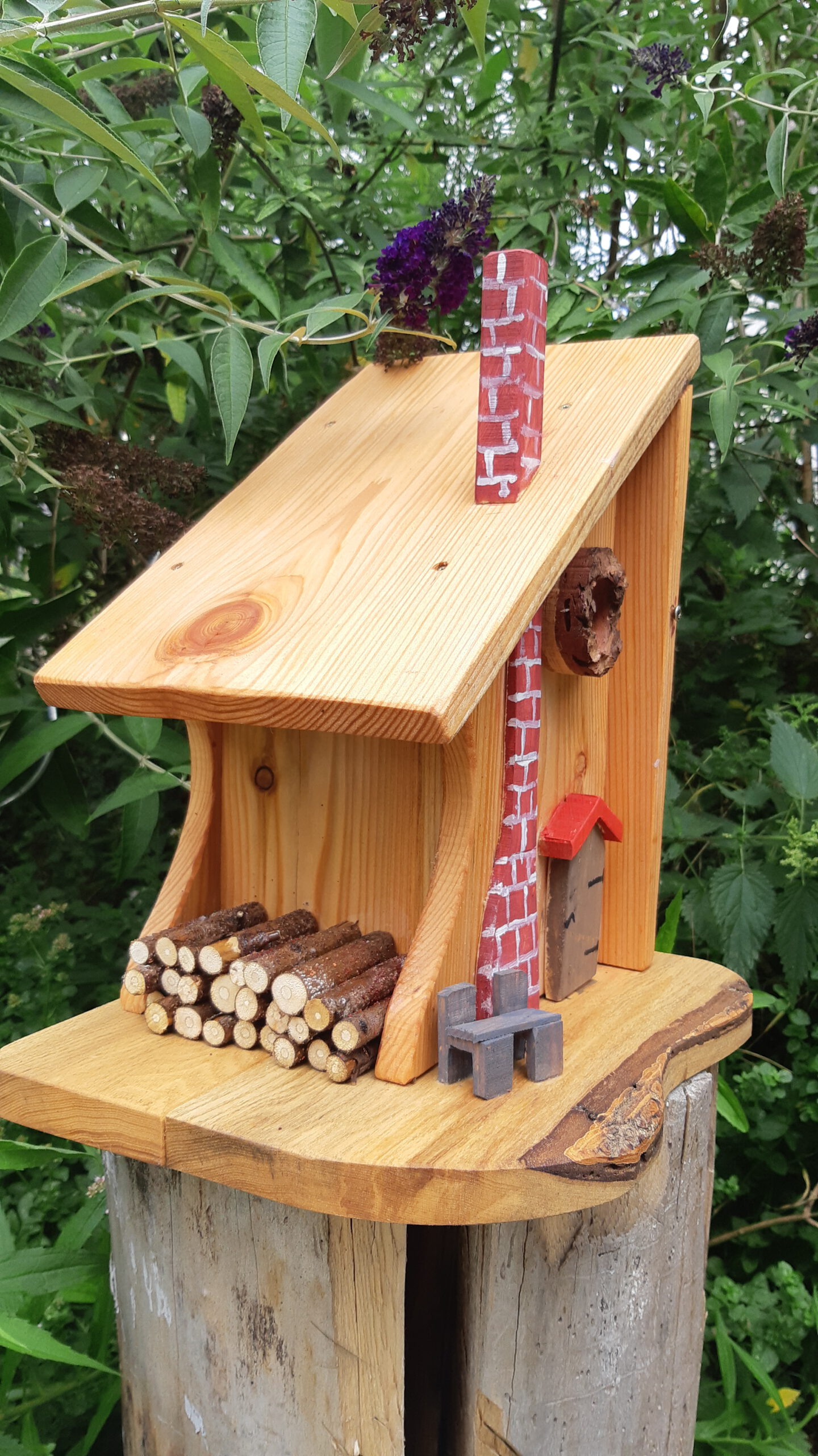Dieses liebevoll gestaltete Vogelhäuschen ist weit mehr als nur ein Nistkasten – es ist ein kleines Kunstwerk für Ihren Garten. Gefertigt aus massivem, heimischem Echtholz,