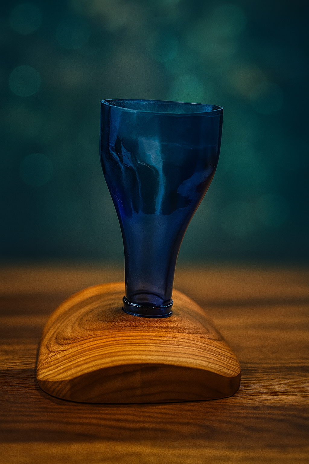 Handgefertigter Kerzenhalter aus Glas und Eschenholz Dieser außergewöhnliche Kerzenhalter vereint rustikale Natürlichkeit mit elegantem Design. Der Fuß besteht aus hochwertigem, handbearbeitetem Eschenholz, dessen einzigartige Maserung
